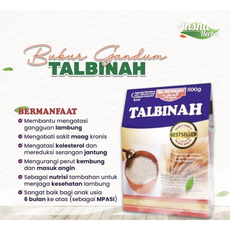 Talbinah adalah tepung gandum dalam bentuk bubuk halus, terbuat dari hasil penggilingan gandum oreganik.