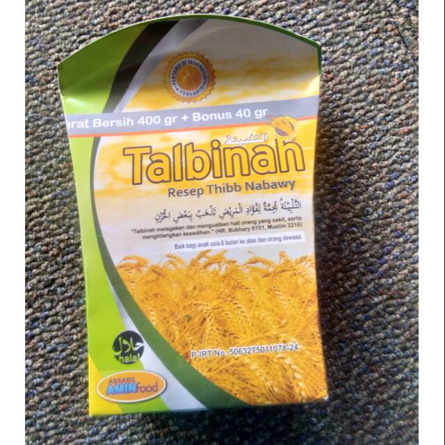 Bubur TALBINAH assabil amin food merupakan bahan makanan yang kaya akan serat pangan, hal ini terbukti dengan hasil penelitian yang menyatakan kandungan energi setiap 100 gram talbinah mencapai 249 KKL, lebih besar bila di bandingan dengan energi dari beras yang hanya 178 KKL / 100 gram. Khasiat bubur talbinah yang kaya akan serat alaminya, membuat TALBINAH memiliki banyak manfaat positif dalam mencegah dan melakukan terapi penyembuhan beberapa penyakit, yaitu antara lain: Efektif mengatasi dan mengobati berbagai gangnuan asam lambung Efektif mengendalikan dan mengikat asam empedu. Mengobati penyakit maag kronis dengan alami dan sangat aman untuk radang lambung. Efektif mengendalikan kolesterol serta mengurangi serangan penyakit jantung. Mengatasi perut kembung dan sering masuk angin. Membantu proses pencernaan makanan di dalam lambung. Menstabilkan produksi asam lambung secara alami. Mampu bekerja sebagai herbal anti mual ( Antiemetik ). Melancarkan BAB dan Urine.