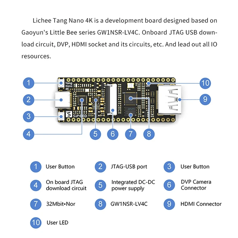 Tang Nano 4K Gowin Минималистичная FPGA Goai плата разработки совместимая с HDMI-камерой