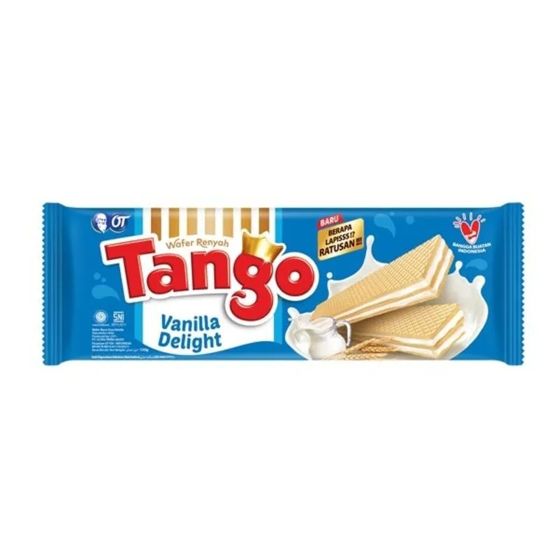 Tango Wafer Vanilla Biskuit merupakan biskuit yang terbuat dari resep ahli original (ahli pembuat cokelat) yang mengkombinasikan wafer krispi dengan susu, sehingga menghasilkan rasa yang gurih & lezat di setiap gigitannya. Ideal dinikmati saat santai Anda bersama keluarga.