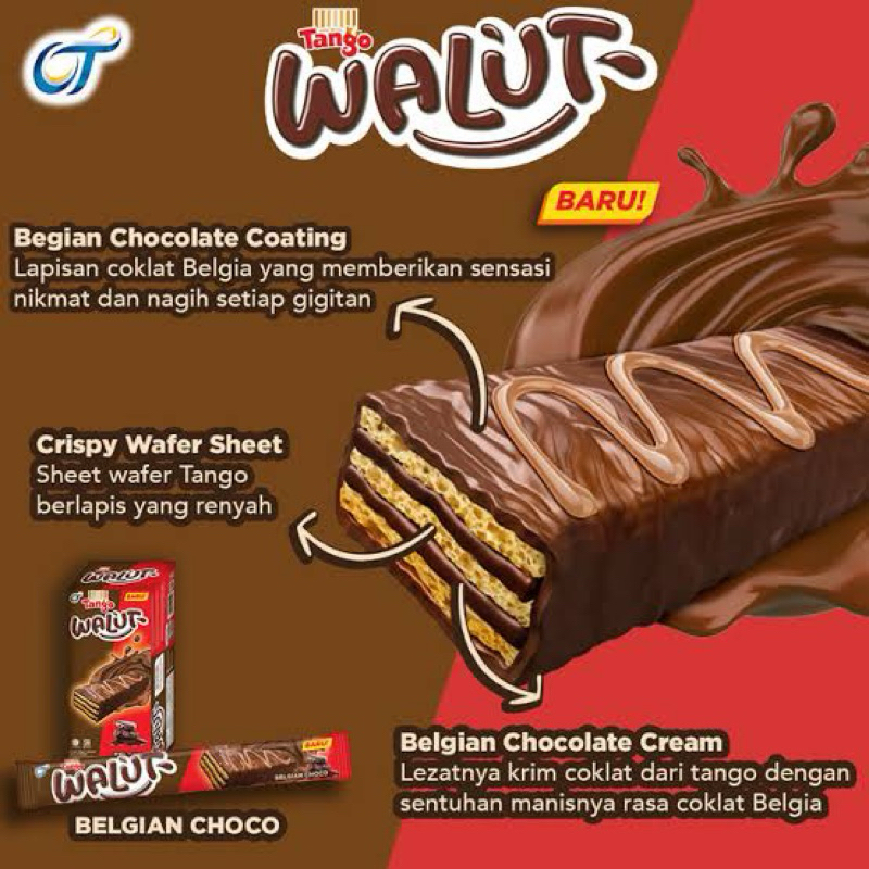 Rasakan kenikmatan wafer salut yang luar biasa! Tiga lapis wafer renyah dengan krim yang lezat dan lembutnya salut cokelat menjadikan Walut Wafer Salut Paling Yahut!