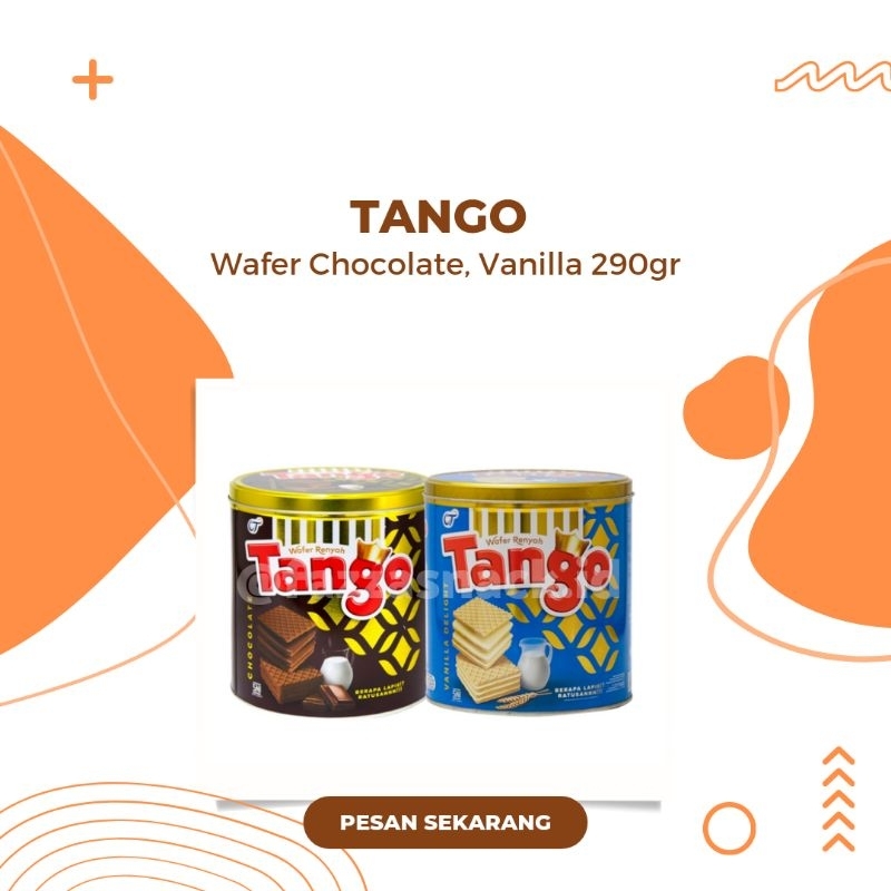 Tango Wafer Chocolate 290 gr adalah sebuah makanan ringan berupa wafer renyah rasa cokelat. Dibuat dari bahan dasar berupa tepung gandum dan susu pilihan berkualitas, dan bahan bahan campuran lainya. Diolah secara higienis menggunakan teknologi tinggi sehingga menghasilkan biskuit wafer yang nikmat. Biskuit wafer dengan tekstur wafer yang renyah, berpadu dengan krim cokelat nikmat yang berasal dari bubuk kokoa dengan mutu tinggi. Dibuat dengan bentuk balok yang terdiri dari empat lapisan wafer dan krim cokelat pada setiap potongannya. Ukurannya yang pas dan tebal, memberikan kenikmatan dan kemudahan saat dimakan. Dikemas menggunakan kemasan tabung kaleng, sehingga kualitas wafer selalu terjaga.