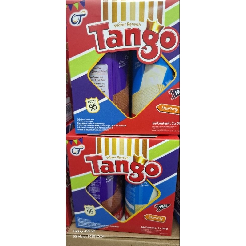 Tango Wafer Renyah Yummy Box Tin 100gr (2x50g) Coklat Kelapa adalah produk wafer yang memiliki rasa coklat kelapa yang lezat dan renyah saat dikunyah. Produk ini dikemas dalam kotak tin dengan berat 100gr dan terdiri dari 2 kemasan dengan masing-masing berat 50gr
