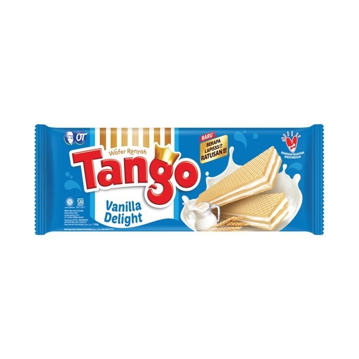 Tango Wafer Vanilla Delight merupakan wafer yang memiliki tekstur yang renyah dan lembut yang diolah menggunakan bahan-bahan gandum yang berkualitas dan susu yang berasal dari negara penghasil susu terbaik didunia. Tango Wafer Vanilla merupakan wafer dengan isian krim susu vanila yang harum dan lembut sehingga menghasilkan rasa yang enak dan lezat.