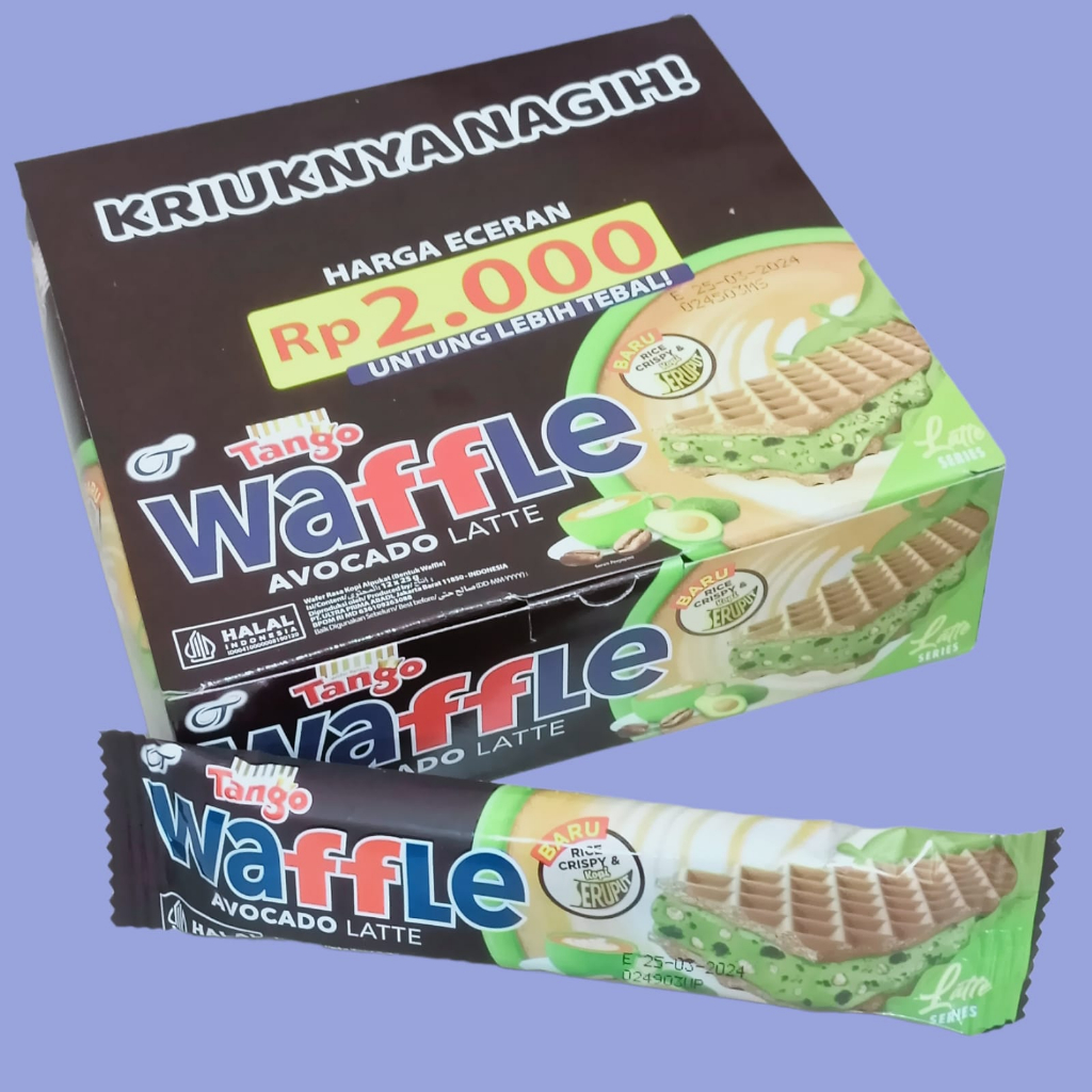 Tango Waffle Choco Avocado Latte 25gr [12 pcs/box] merupakan perpaduan antara tebalnya krim coklat, kress nya rice crispy, garingnya cookiez, berpadu dengan waffle renyah. Sehingga jika dinikmati dimulut sangat nikmat dan lezat, manis, renyah, garing jadi satu. Disukai segala usia.