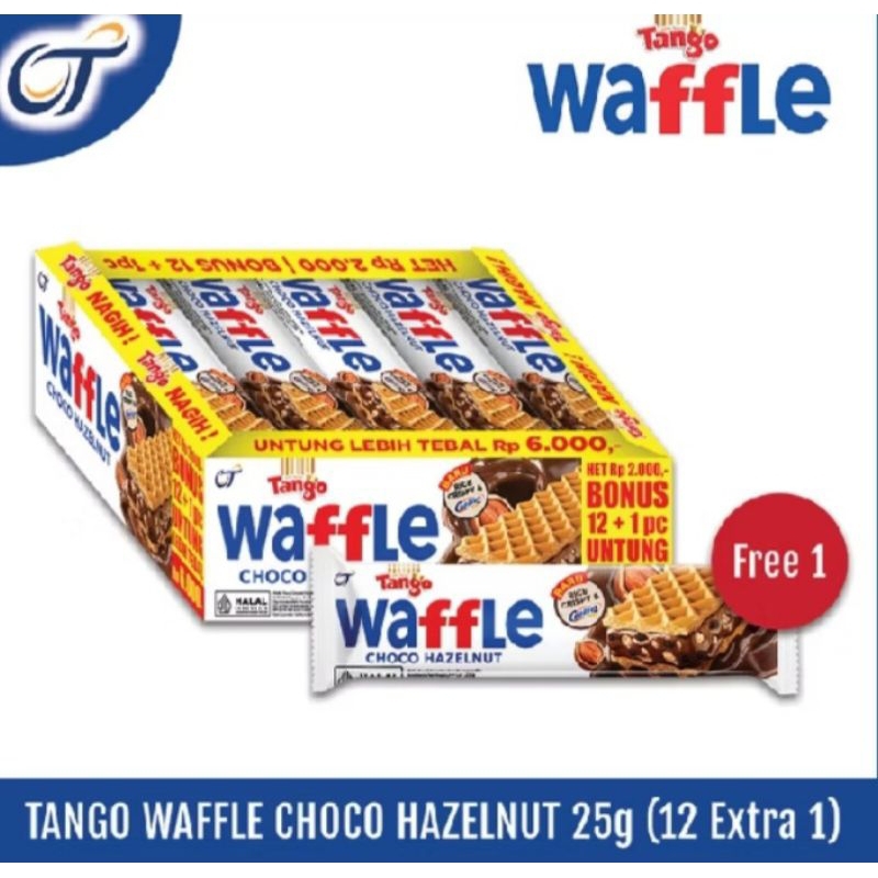 WAFFLE TANGO CHOCO HAZELNUT 25GR HARGA PER BOX 1 BOX isi 12 PCS + BONUS 1 PCS 1 pcs isi 25 gram