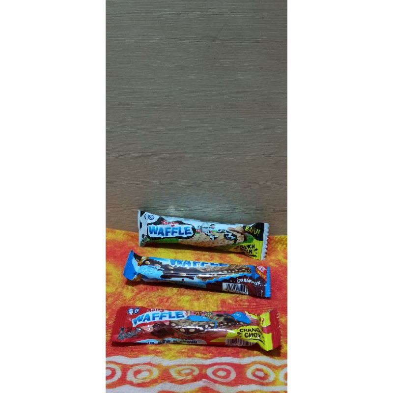 Wafer waffle dengan krispi di dalam krim