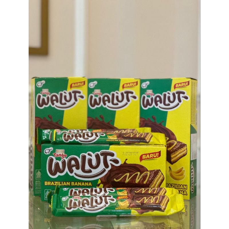 Tango Walut dengan kerenyahan 3 lapis wafer dengan krim tebal, disalut dengan coklat diatasnya yang memberikan sensasi nikmat dan nagih dalam setiap gigitan