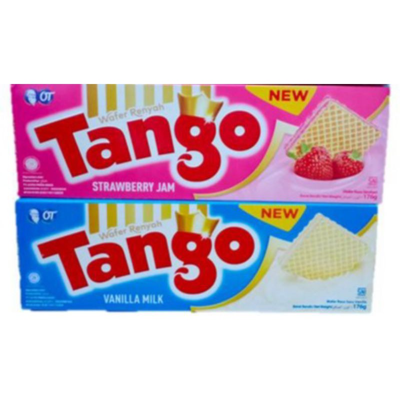 Tango wafer dengan varian vanilla milk & strawberry jam