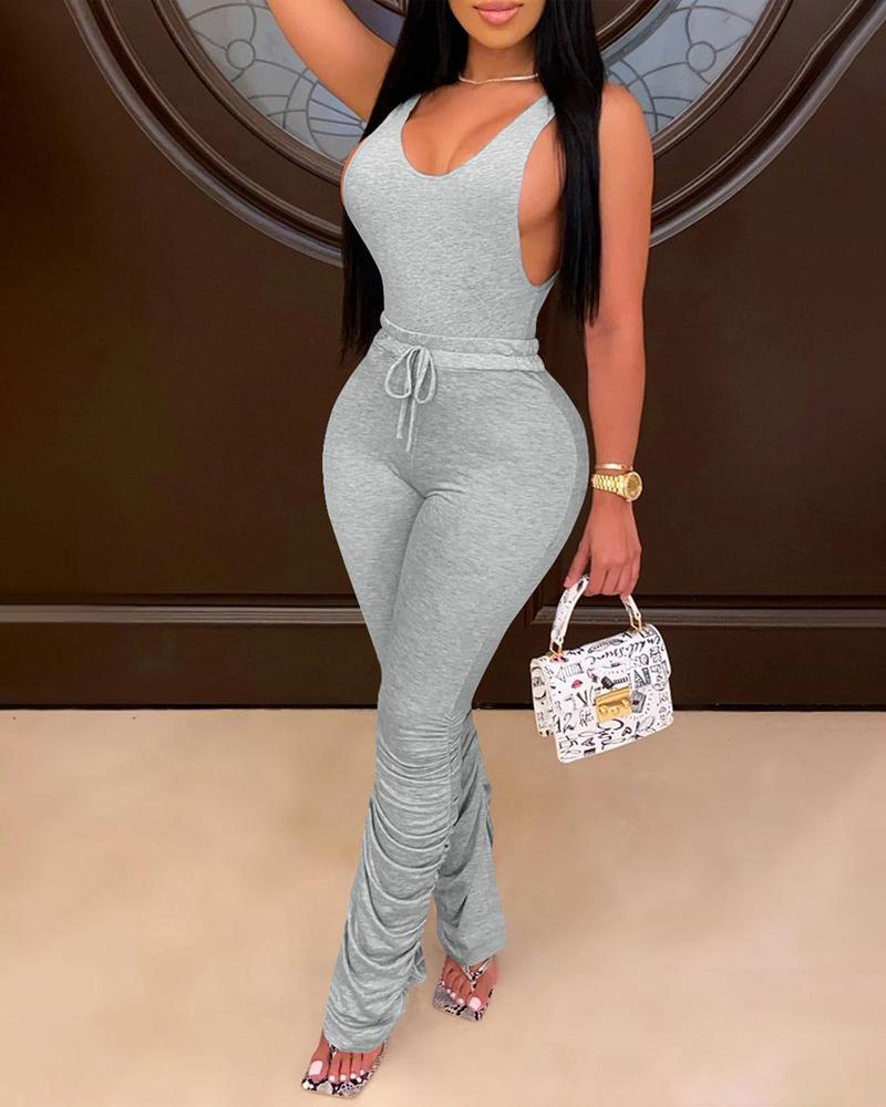Tank Top & Drawstring Ruched Pants Set, Gray