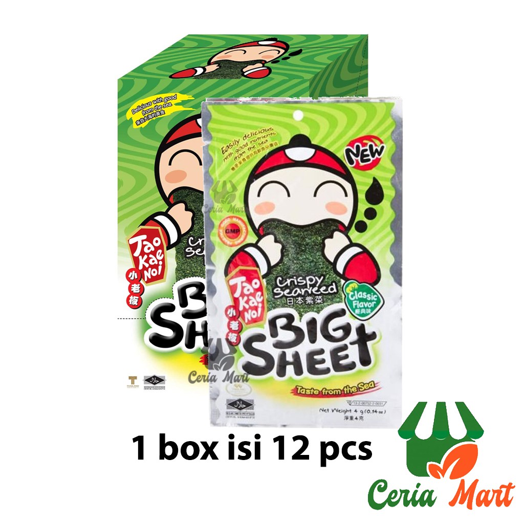 Tao Kae Noi Big Sheet Snack Rumput Laut Nori Halal MUI Rasa Classic Original Box isi 12pcs