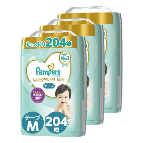 [Tape M size] Pampers diaper, the best for first-time skin (6~11kg), 204 sheets (68 sheets x 3 packs), case item
