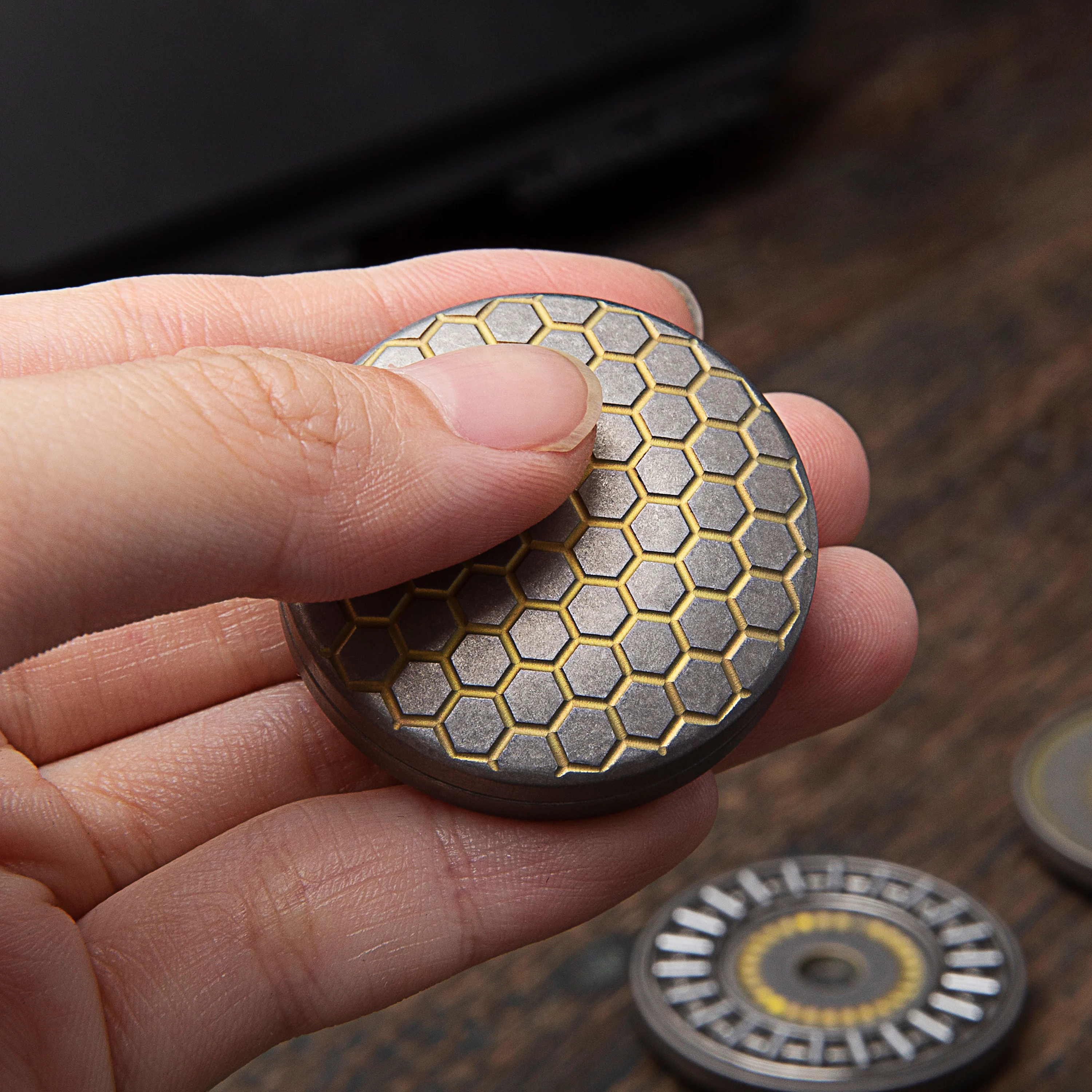 Taptic Coin Made Of Titanium With A Honeycomb Pattern.