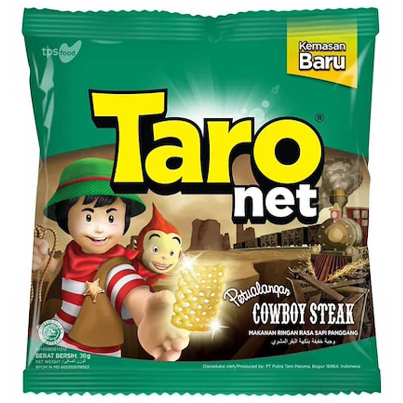 adalah makanan ringan berbentuk net dengan rasa sapi panggang ini akan membawamu pada berbagai momen yang tak terlupakan. Kerenyahan istimewa dari Taro Net rasa Cowboy Steak ini akan menjadi kesukaan siapa saja yang menikmatinya. Jalani hari-hari serumu bersama teman-teman dengan renyah dan gurihnya Taro Net Cowboy Steak. Tersedia dalam kemasan bag 36 g.