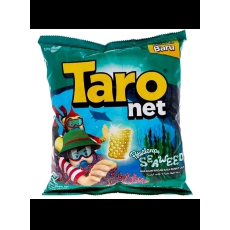 TARO NET MINI RASA RUMPUT LAUT SNACK CEMILAN ANAK BERTEKSTUR RENYAH DAN GURIH BISA DIJADIKAN CEMILAN UNTUK KUMPUL KLUARAGA.