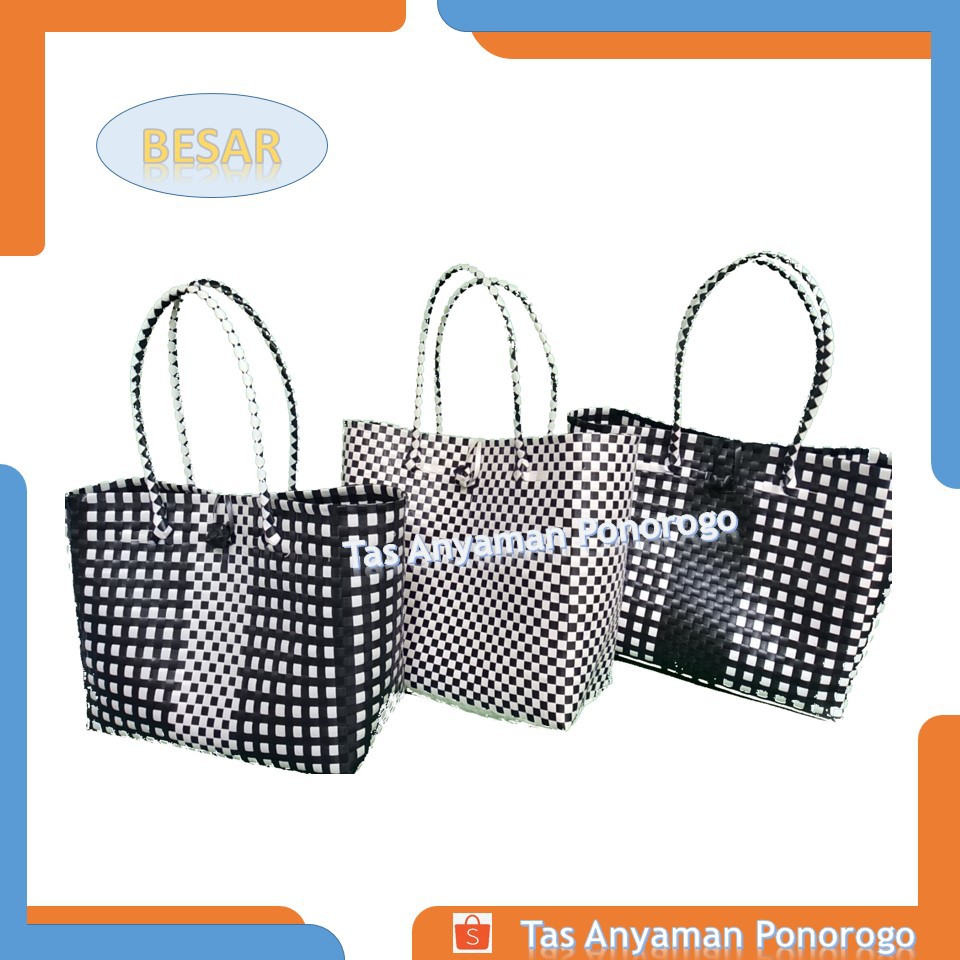 Tas Anyaman Plastik Kaca Monochrome kwalitas super