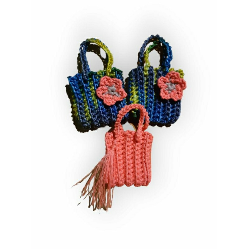 Tas rajut mini untuk tempat angpao, bisa juga dijadikan sebagai gantungan kunci.