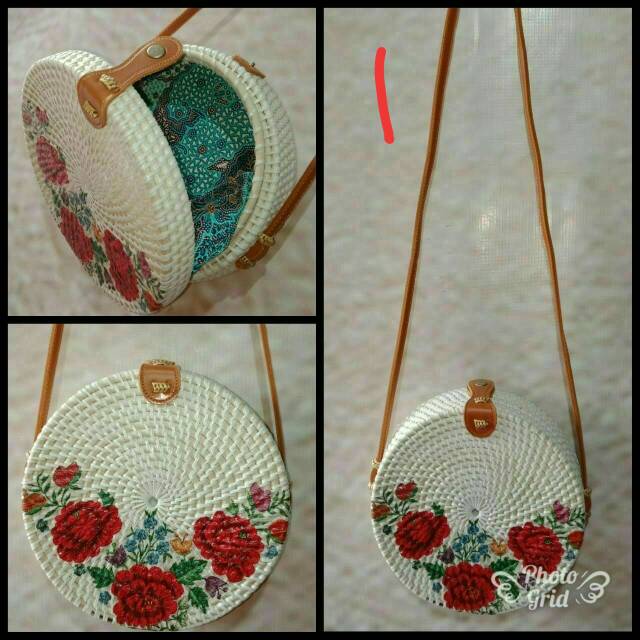 Tas Rotan Motif Lukis/Deco