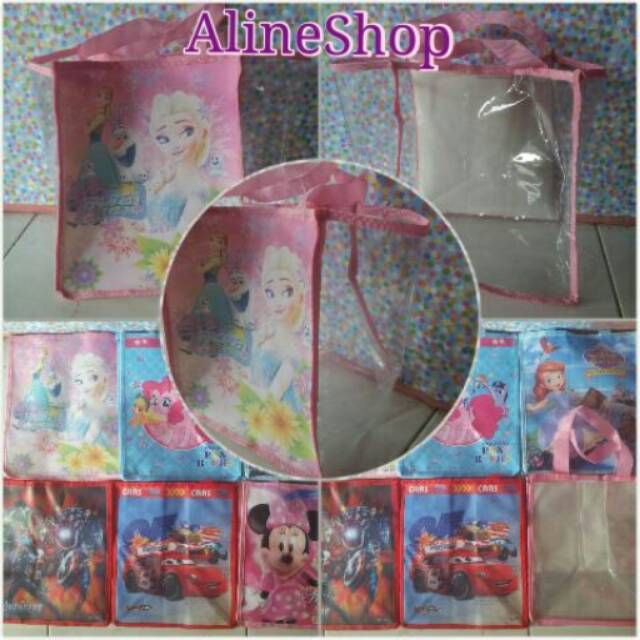 Yuk siapa yg mau Ultah....Tas Souvernir Cantik uk.T29cm L25cm Alas 20cm Tali 35cm bahan Kanvas Printing+Mika