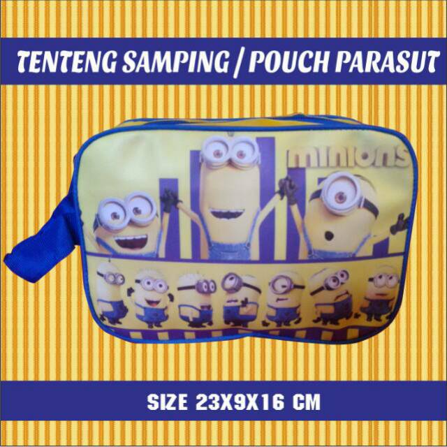Tas ini menggunakan bahan utama kain parasut dengan kombinasi oscars utk bagian gambar.