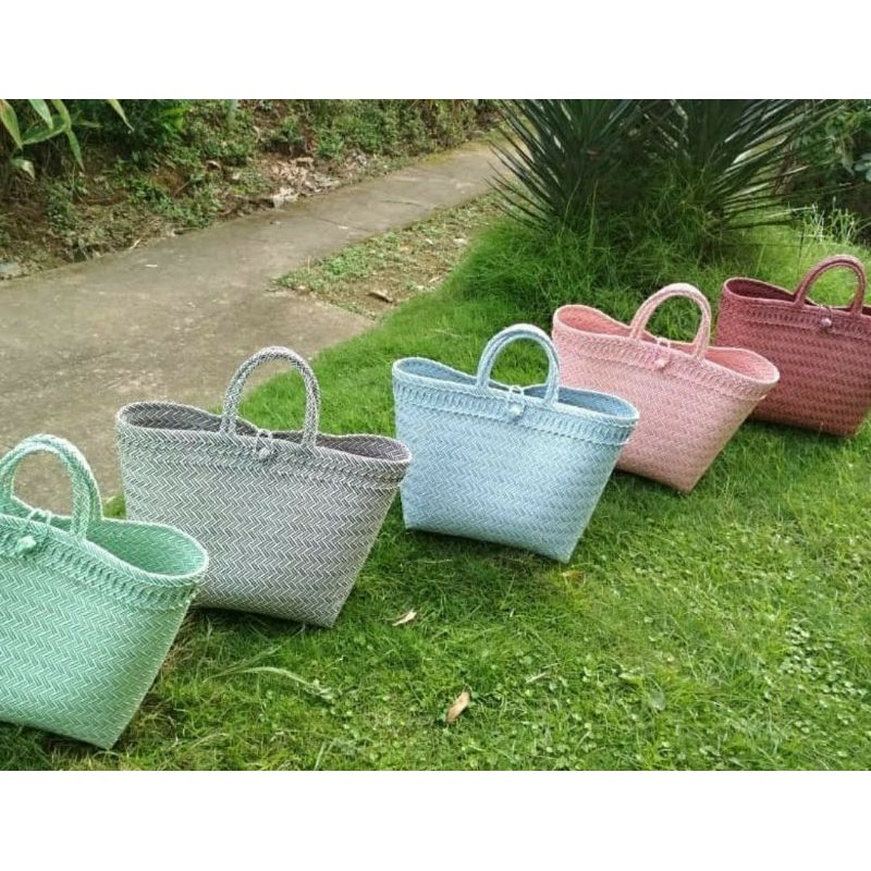 Tas anyaman dengan pilihan warna yg menarik, memiliki banyak fungsi mudah, ringan dan praktis.