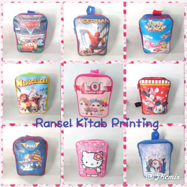 Ransel kitab bahan parasut kombinasi printing oscar di bag depan