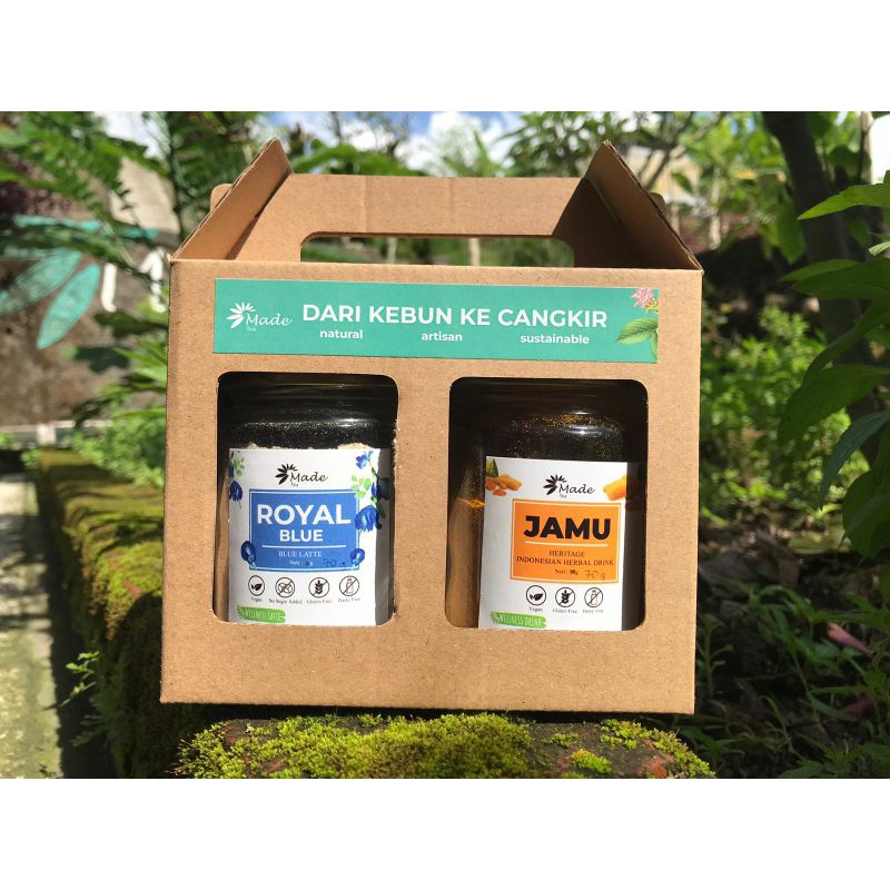 Kombinasi halus dan lembut dari Bunga Telang Bubuk, Kayu Manis, Kapulaga Hijau, Jahe, Bubuk Kelapa Murni dan tanpa tambahan gula memberikan suasana santai.