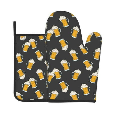 Tebeau Beer1 Print Oven Mitts and Pan Racks 2-Piece Set Kitchen Oven Mitts and Pan Racks Heat Resistant 500 °F for Baking and Cooking