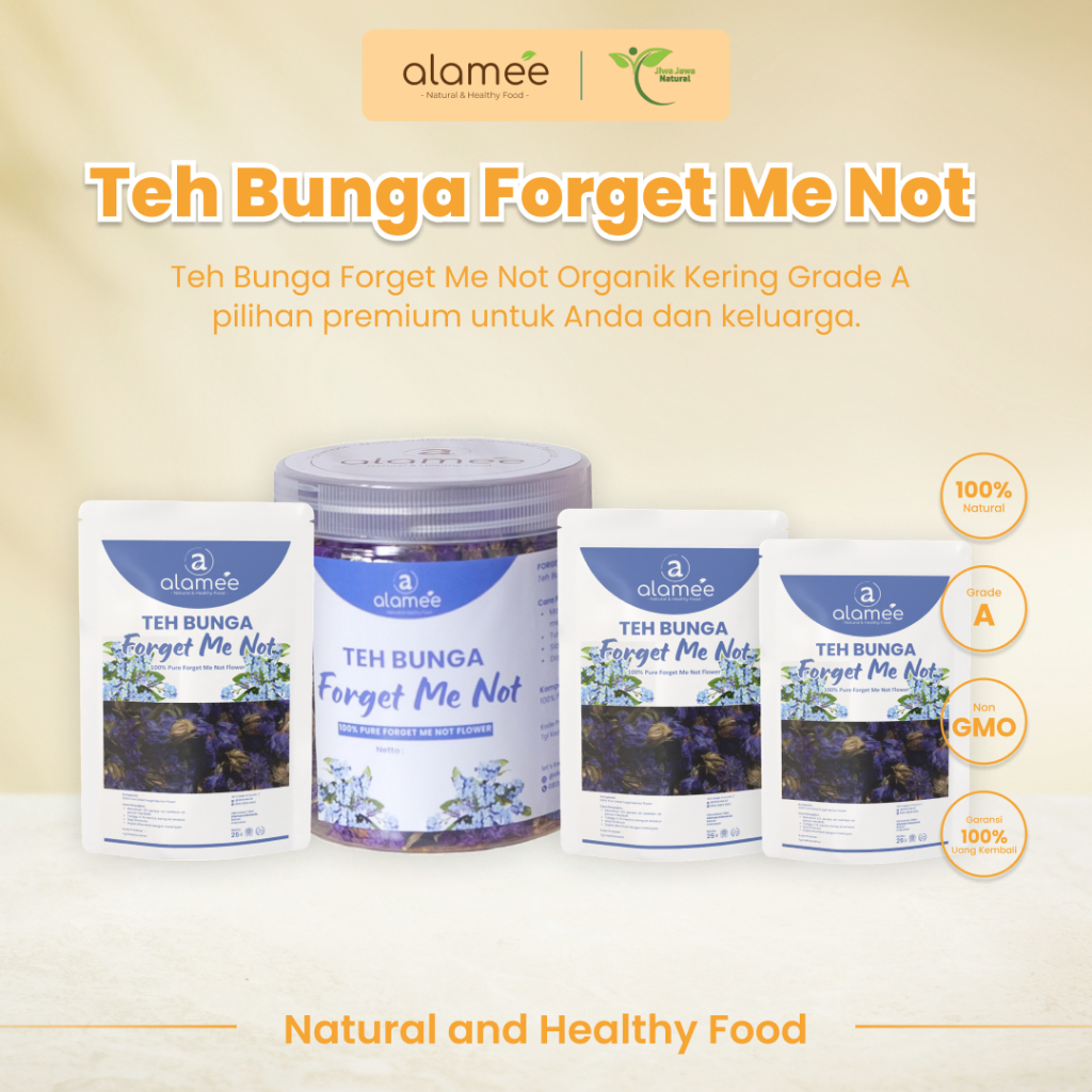 - Seduh 1 sendok teh Forget Me Not tea dengan air panas sebanyak 200ml