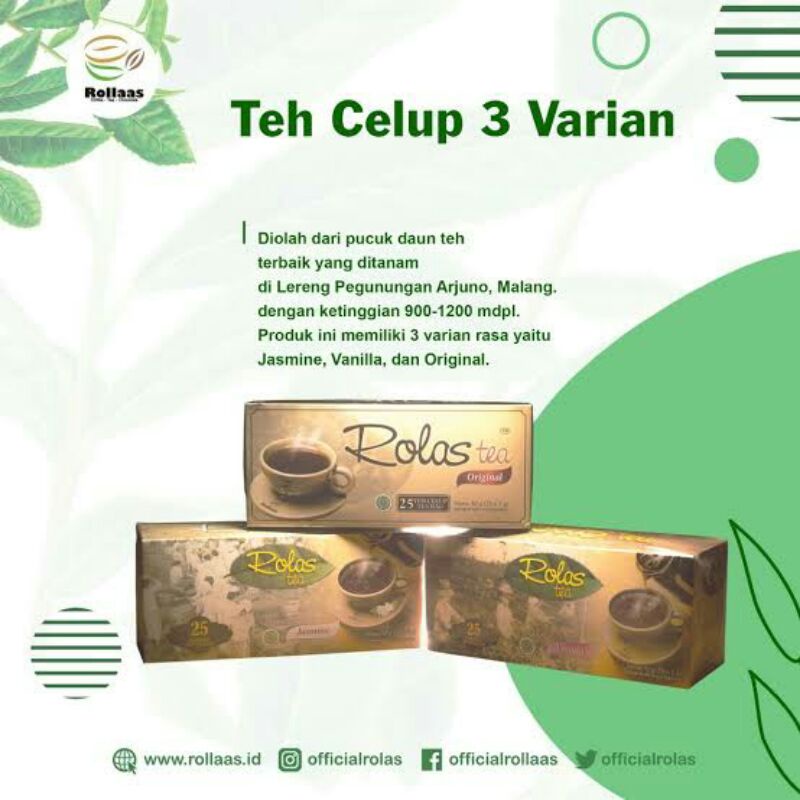 Teh Rollaas merupakan produk teh berkualitas yang diperoleh melalui rangkaian sistem pemetikan, pemilihan, dan proses pengolahan kuncup daun teh khusus. Dengan perpaduan aroma khas dan citarasa tersendiri, Teh Rollaas menyajikan pengalaman beda bagi penikmat cita rasa teh. Produk asli dari Perkebunan Teh Wonosari - Lawang - Kab.Malang
