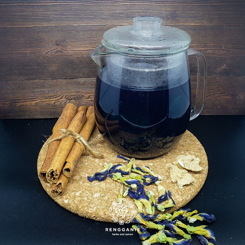 Komposisi: Bunga telang, kayu manis, dan Jahe pilihan