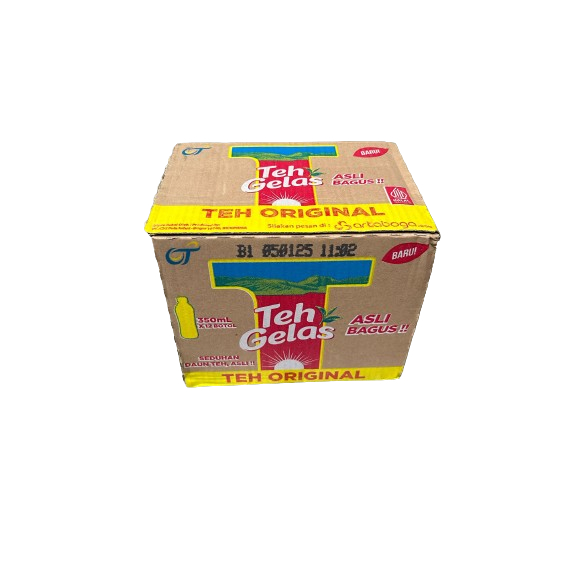 Teh Gelas Botol dalam satu karton terdiri dari 12 boto yang masing masing memiliki isi 350 ML