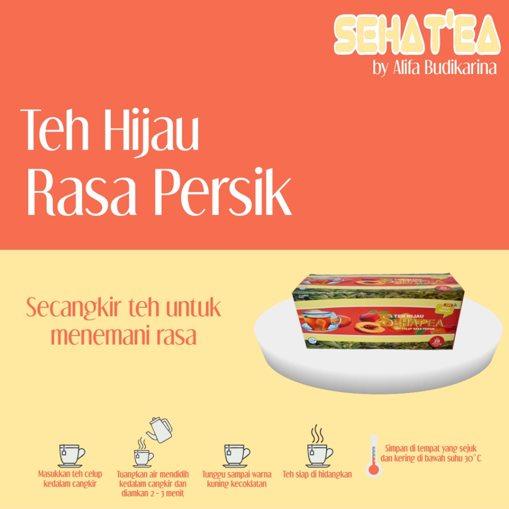 Premium Teh Hijau Jasmine ( Sehat'Ea ) dengan tambahan rasa persik. Dikonsumsi untuk kebutuhan sehari-hari. Teh melati kaya akan antioksidan dan menyegarkan dahaga serta menemani dari penatnya kesibukan sehari-hari.