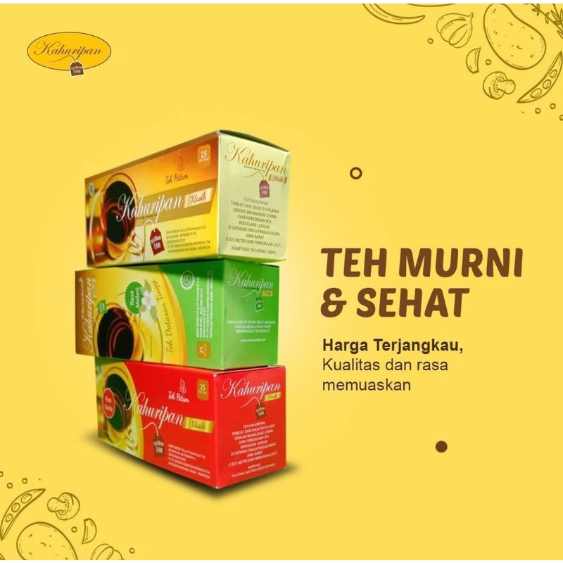 Teh Kahuripan, Teh hitam celup dengan kualitas terbaik di kelas nya dengan 3 varian aroma Original,Vanila dan Melati