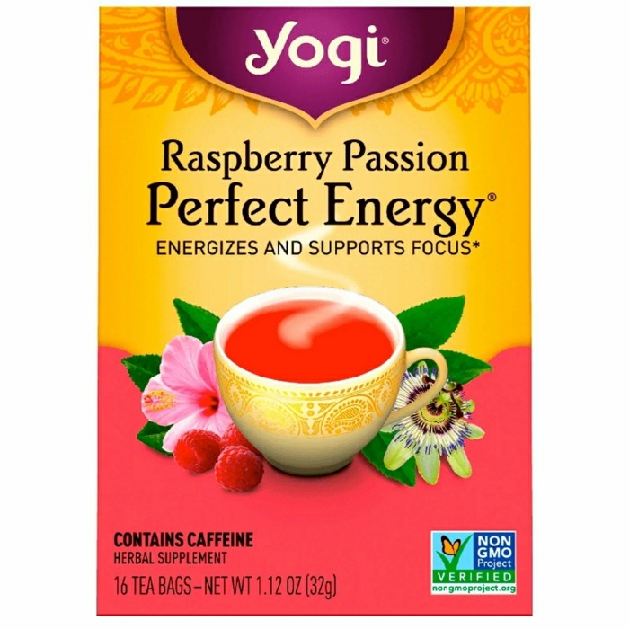 Yogi Raspberry Passion Perfect Energy® tea blends naturally invigorating Green Tea and Assam Black Tea with amino acid L-Theanine to help energize your body and focus your mind. Traditionally-used Ayurvedic herbs including Sage and Ashwagandha help to further support clarity of mind, while Raspberry and Passion Fruit add bright, fruity flavor. Sip on intriguingly delicious Yogi Raspberry Passion Perfect Energy® tea whenever you’re looking for the ‘perfect’ energizing pick-me-up.