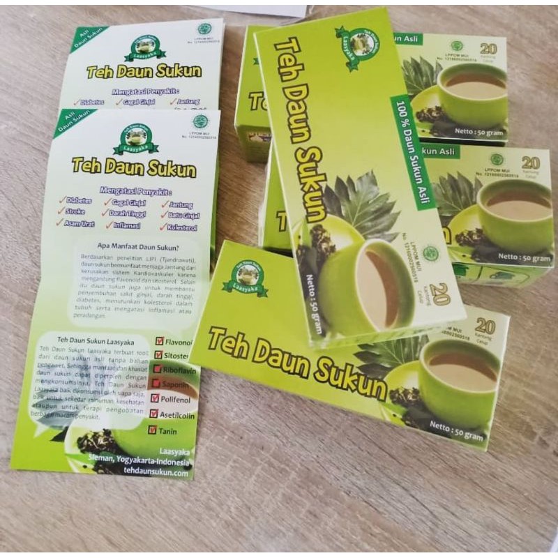 asli daun sukun, mengatasi penyakit : Diabetes, Stroke, Asam urat, Gagal ginjal, Darah tinggi, Inflamasi, Jantung, Batu ginjal, Kolesterol. Teh daun sukun Lasyaka terbuat 100% dari daun sukun asli, tanpa bahan pengawet.