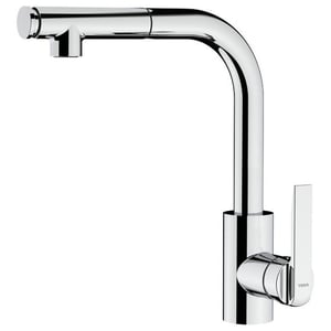 Experience convenience and versatility with this swivel spout featuring a pull-out function offering both normal and shower spray options. Crafted with high-resistance ceramic disc cartridges and an anti-scale aerator, it ensures durability and efficient water flow. The Easy-Quick fixation system and flexible inlet pipes make installation hassle-free.