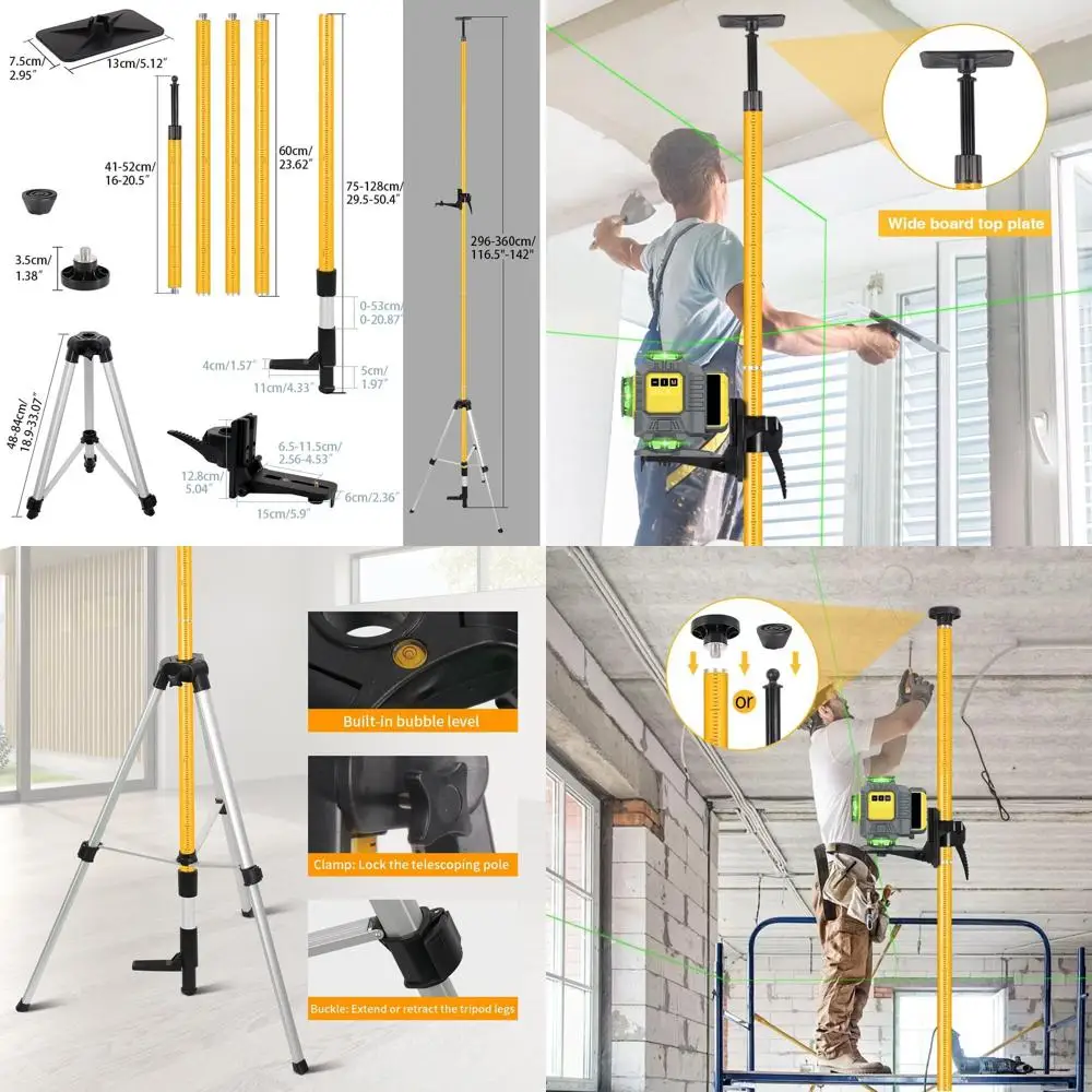 Telescoping Laser Level Pole with Tripod, 12 Ft/3.7M Adjustable, Multi-Functional Bracket, Carry Bag Included