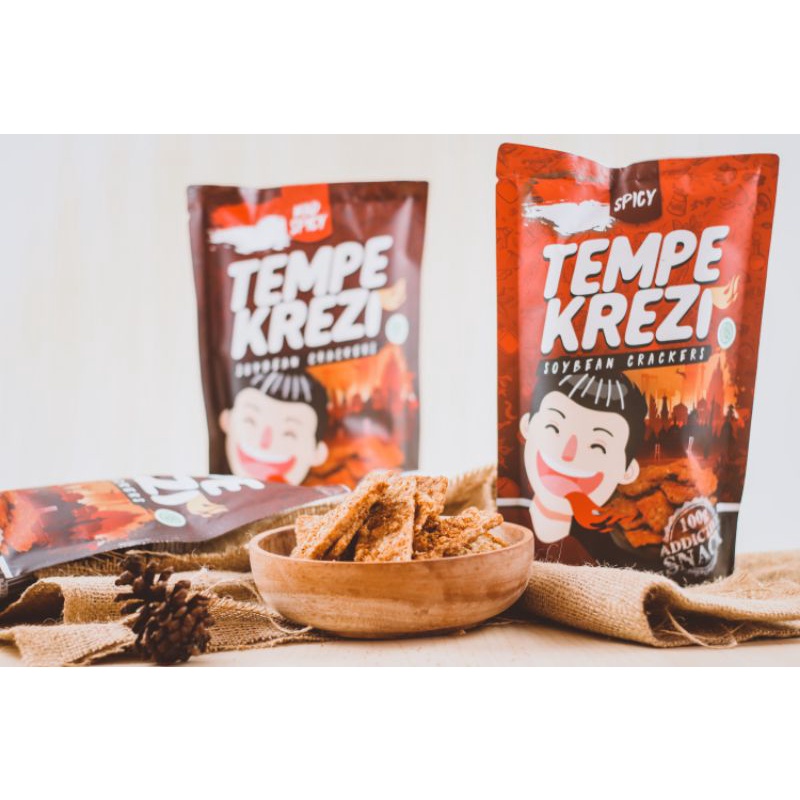 Tempe Krezi (keripik tempe pedas) Tempe Krezi (dulunya dikenal dengan merk Tempe GILA) adalah inovasi produk tradisional berbahan dasar kedelai yang dikemas menjadi camilan kekinian dan dibalut dengan racikan bumbu pedas spesial home-made.