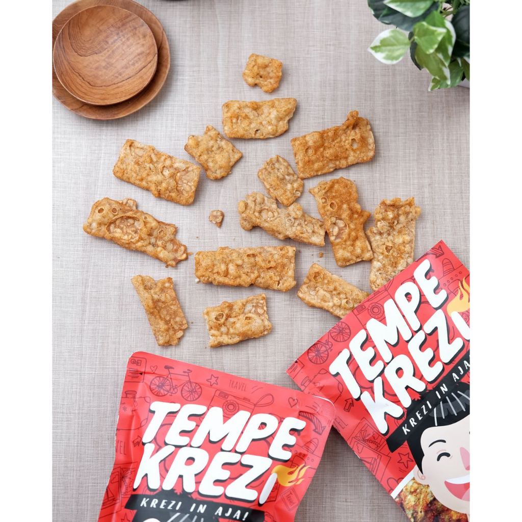 Tempe Krezi (dulunya dikenal dengan merk Tempe GILA) adalah inovasi produk tradisional berbahan dasar kedelai yang dikemas menjadi camilan kekinian dan dibalut dengan racikan bumbu pedas spesial home-made. Rasa pedas Tempe Krezi tidak akan kamu temui di camilan pedas lain, karena bumbunya asli buatan Tempe Krezi.