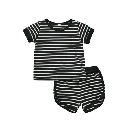 WPNAKS Baby’s T-shirt and Shorts Set Fashion Stripe Printed Short Sleeve Tops and Elastic Short Pants
