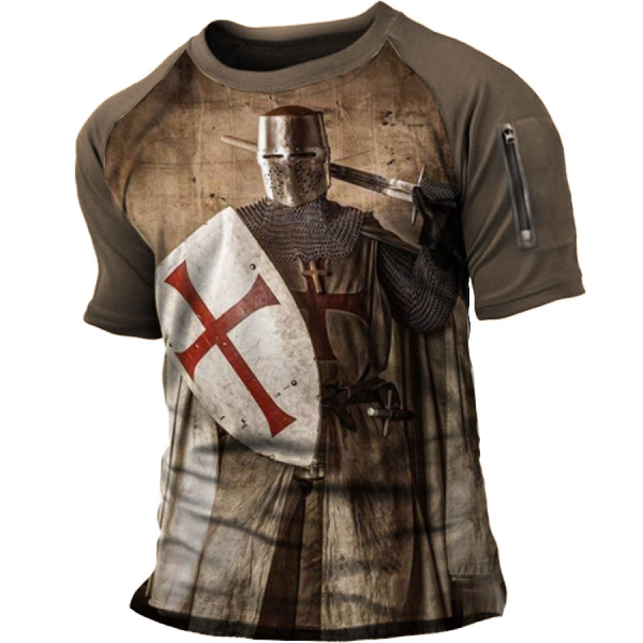 Templar Print Men's Outdoor Tactical Zip Raglan T-Shirt