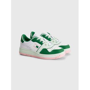 | summary: | Consigue un look retro con estos tenis de baloncesto con la suela gruesa y un parche tonal de Tommy. Características • Exterior en mezcla de piel • Interior de poliéster reciclado • Plantilla de poliuretano, poliuretano reciclado y goma termoplástica reciclada • Suela de goma y caucho • Producido según los estándares de la organización Leather Working Group • Paneles con mezcla de texturas • Detalles distintivos de Tommy Jeans Talla y corte • Con cordones • Diseño de corte bajo Composición y cuidados • 79 % piel, 21 % poliuretano |