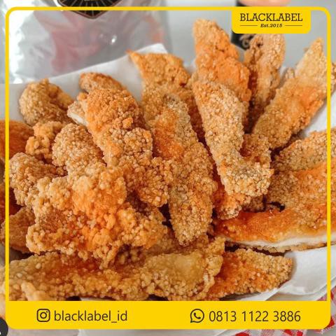 - Tepung crispy blacklabel dibuat dari bahan dasar Tapioka