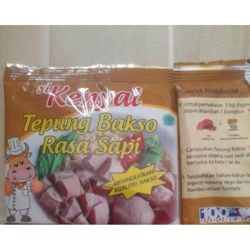 Tepung bakso merk si Kenyal adalah tepung pengganti daging sapi dalam pembuatan bakso serta meningkatkan aroma dan rasa daging sapi. Bersertifikat halal dan pertama di Indonesia. Mengapa harga tepung bakso ini lebih mahal dari produk sejenis? Karena selain merenyahkan, mengenyalkan, tepung ini memiliki kelebihan meningkatkan aroma dan rasa khas sapi, meningkatkan jumlah adonan sehingga jumlah butiran bakso yang dihasilkan lebih banyak dibandingkan dengan penggunaan tepung lain.