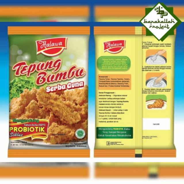 Tepung bumbu HALAWA dibuat dengan racikan yang pas dari tepung dan bumbu alami, hasilkan gorengan dengan tekstur garing dan renyah serta aroma yang menggugah selera. Dilengkapi dengan Probiotik Siklus yang meningkatkan cita rasa