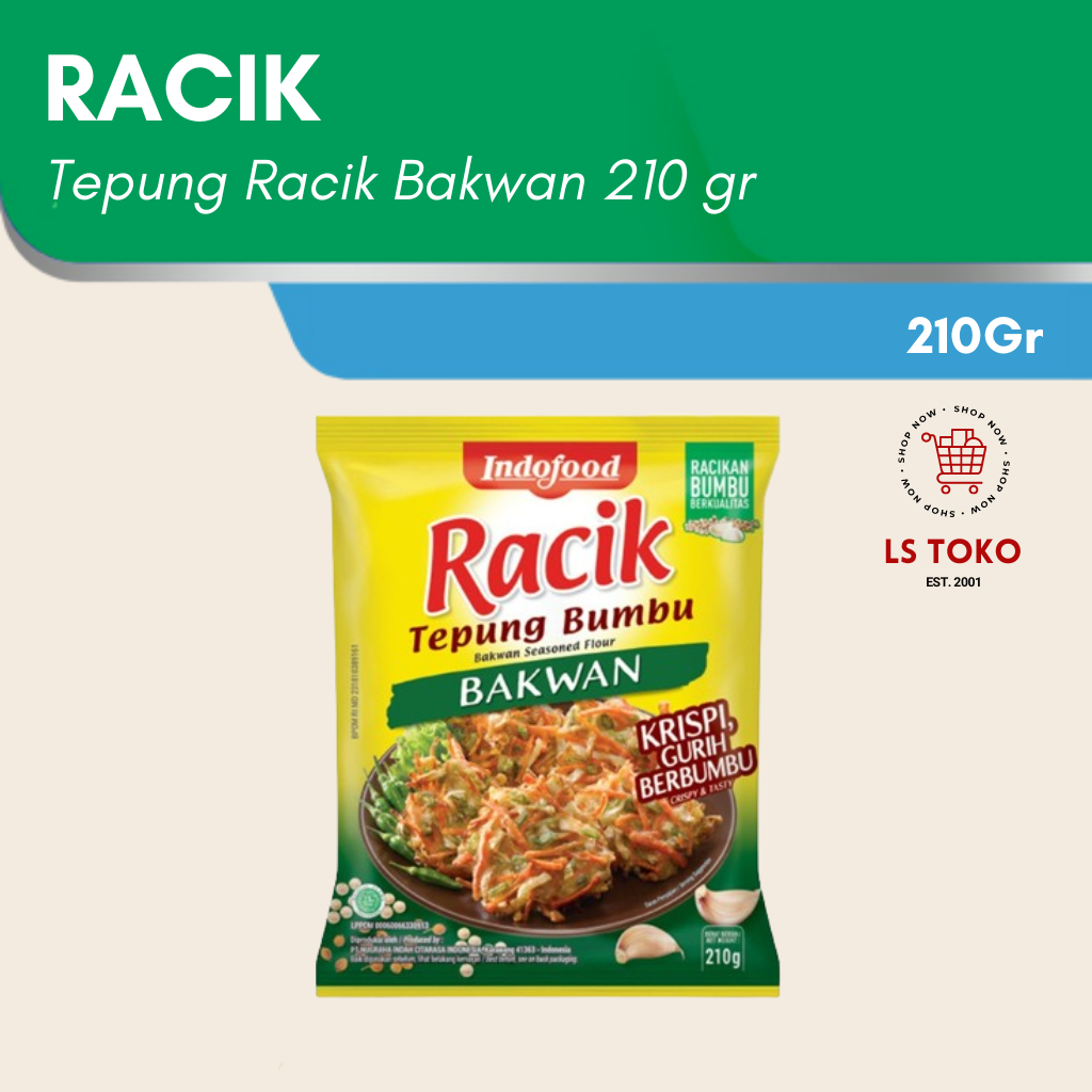 Tepung Racik Bakwan 210 gr - 1 pcs terbuat dari paduan spesial tepung terigu, beras, dan tapioka berkualitas. Diracik khusus dengan aneka rempah pilihan sehingga menghasilkan tepung yang renyah tahan hingga 5 jam dan gurih kaya rasa. Praktis digunakan dan cocok dengan citarasa keluarga.
