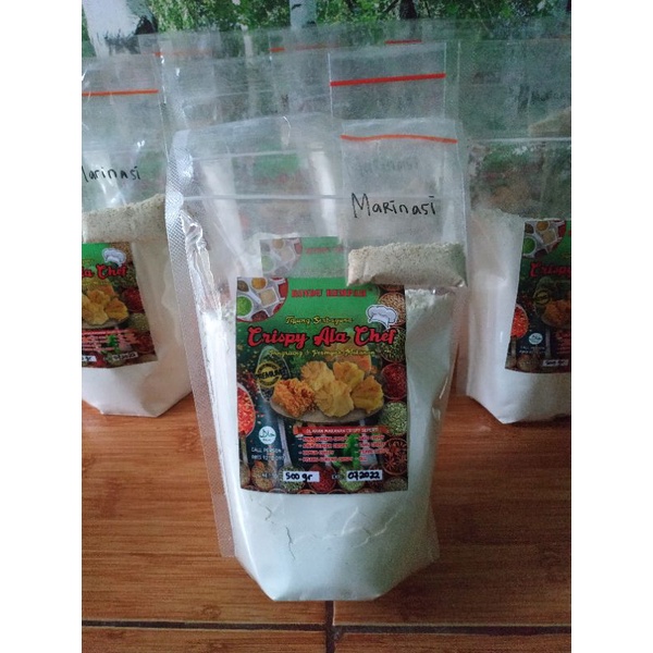 Tepung rempah serbaguna di jamin crispy dan renyah. Tepung terdiri dari 12 macam rempah pilihan. Tepung ini sudah termasuk free marinasi untuk 1kg daging. Banyak di pakai oleh penjual ayam geprek, ayam crispy, dan ibu rumah tangga yang sedang menjalankan bisnis crispy.