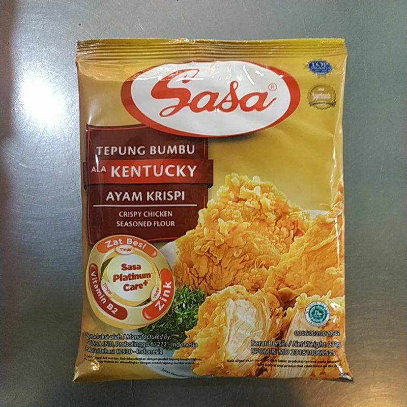 Sasa Tepung Bumbu ala kentucky kaya akan rempah dan di racik dengan menggunakan kombinasi rempah pilihan dan resep ala kentucky yang khas, membuat gorengan menjadi kaya rasa, lebih krispi dan lebih keriting dengan aroma yang menggugah selera.