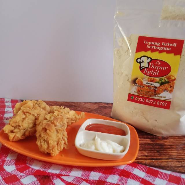 Tepung bumbu kriwil serbaguna sudah dilengkapi dengan bumbu marinasi Terbuat dari kombinasi rempah pilihan, Tepung bumbu kriwil praktis digunakan untuk aneka makanan crispy anda